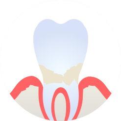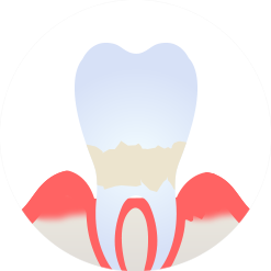 치아와 잇몸이 벌어지며 지지하는 뼈가 손상된 상태입니다.